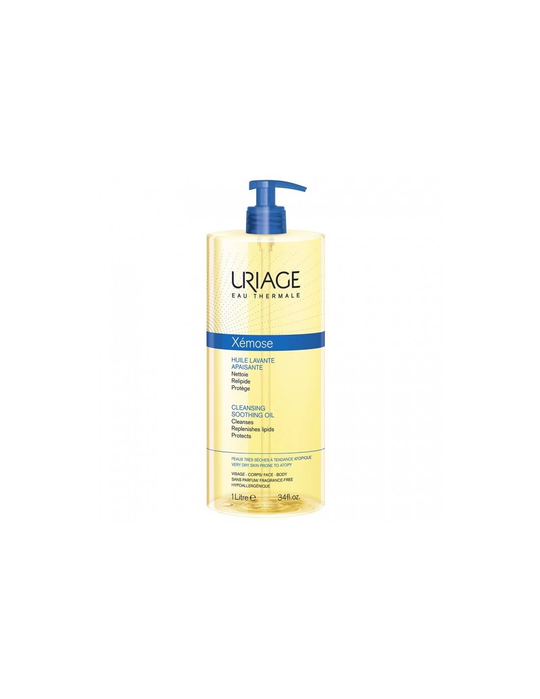 URIAGE Eau thermale Xémose Huile nettoyante apaisante Peaux sèches à très sèches Peaux à tendance atopique Visage et corps 1L Cette huile lavante protège contre le dessèchement cutané et apaise les sensations de démangeaisons. Sa mousse fine et extra-douce apporte un confort immédiat et durable pour les peaux sèches à très sèches. Nourrit Grâce à sa haute concentration en glycérine, l’huile Xémose laisse un film protecteur non gras qui protège la peau des agressions extérieures. Apaise Enrichie en beurre de karité, elle apaise et soulage les sensations de démangeaisons, tiraillements et inconfort.