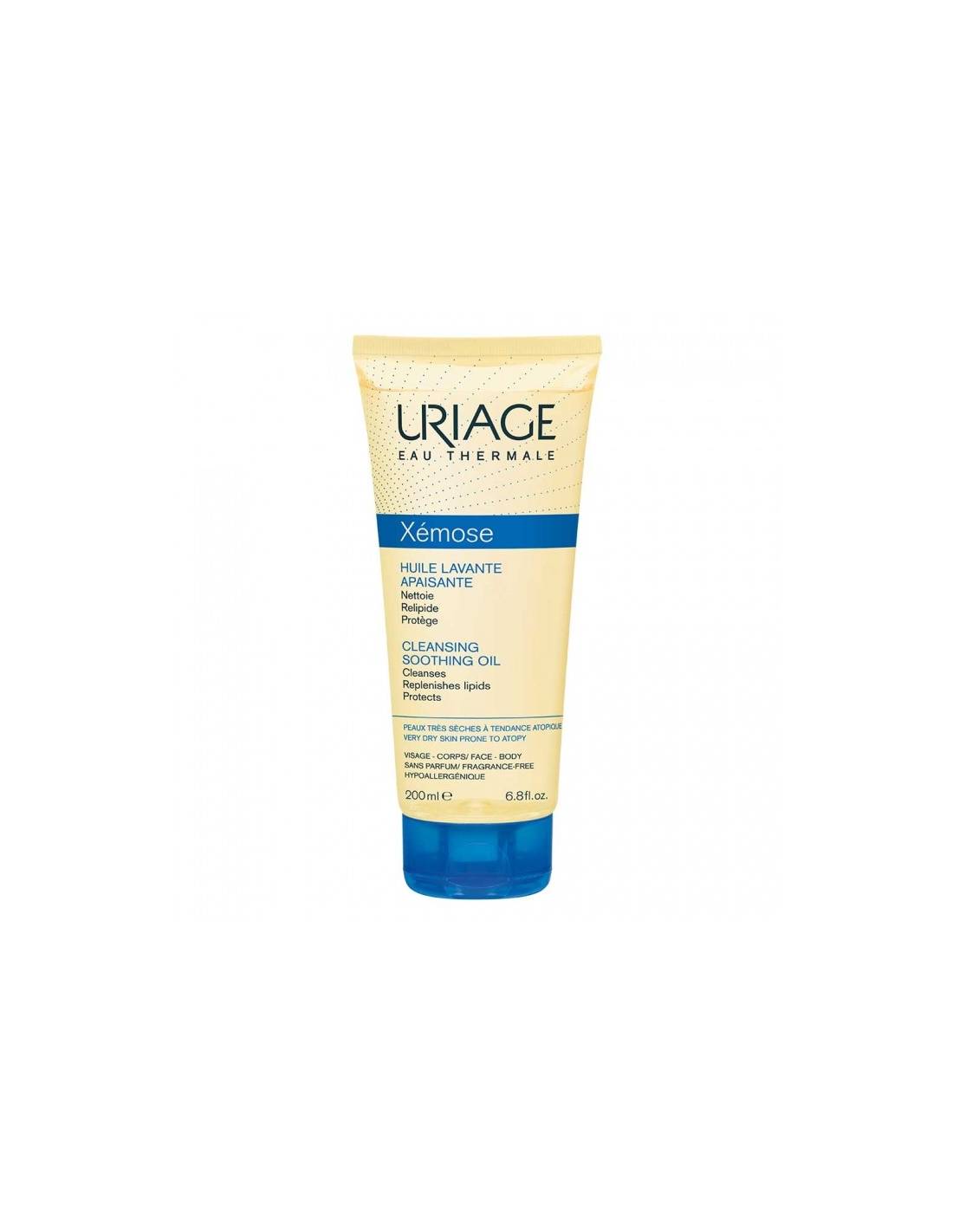 URIAGE Eau thermale Xémose Huile nettoyante apaisante Peaux sèches à très sèches Peaux à tendance atopique Visage et corps 200ml Cette huile lavante protège contre le dessèchement cutané et apaise les sensations de démangeaisons. Sa mousse fine et extra-douce apporte un confort immédiat et durable pour les peaux sèches à très sèches. Nourrit Grâce à sa haute concentration en glycérine, l’huile Xémose laisse un film protecteur non gras qui protège la peau des agressions extérieures. Apaise Enrichie en beurre de karité, elle apaise et soulage les sensations de démangeaisons, tiraillements et inconfort.