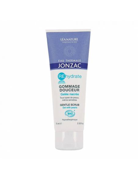 JONZAC Réhydrate Gommage douceur gelée nacrée Tous type de peau même sensibles 75ml Il débarrasse la peau des impuretés et la laisse douce, fraîche et le grain de peau est affiné. Une texture gelée d'un bleu nacré. Fraiche à l'application avec de minuscules particules de silice et de jojoba pour une exfoliation de la peau très douce. La peau est douce, fraiche et le grain de peau est affiné. Un accord fleuri aquatique tout en douceur où les notes de jacinthe et de rose se mêlent à la douceur de l'iris et de la pêche. L'envolée aquatique apporte une touche de fraîcheur à cette composition.