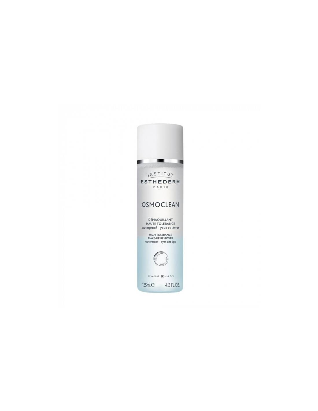 ESTHEDERM Osmoclean Démaquillant haute tolérance Yeux et lèvres Waterproof Yeux sensibles, porteuses de lentilles, lèvres fragiles et irritées. 125ml Une formule biphasée très haute tolérance développée spécifiquement pour les yeux sensibles et les lèvres fragiles. Un démaquillant biphasé formulé en parfaite affinité avec la peau, qui fait aimer les maquillages waterproof aux peaux les plus exigeantes : yeux sensibles, porteuses de lentilles, lèvres fragiles et irritées. Action Préserve l'équilibre fragile du contour de l'œil et la jeunesse du regard. Respecte l'équilibre de la flore cutanée.